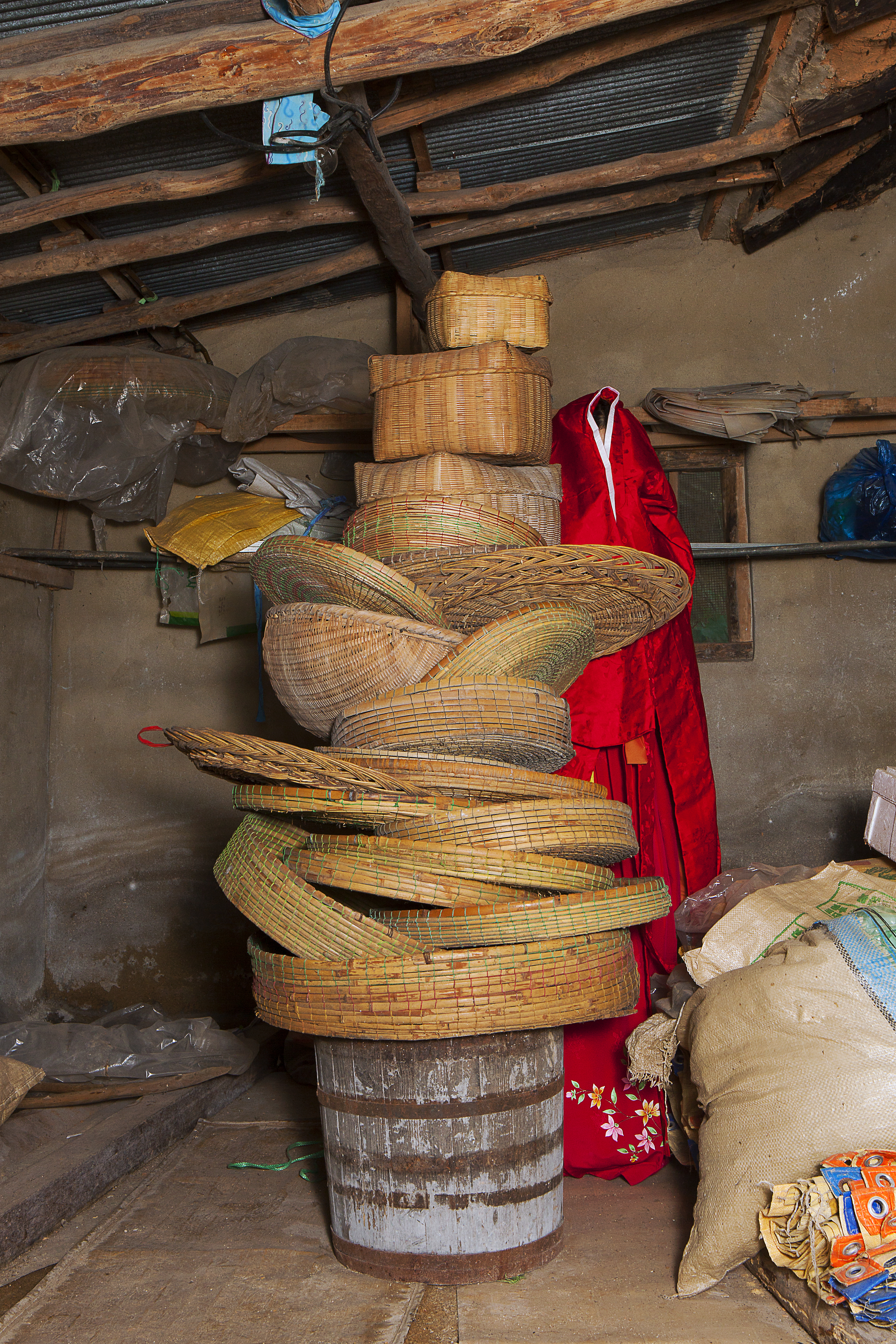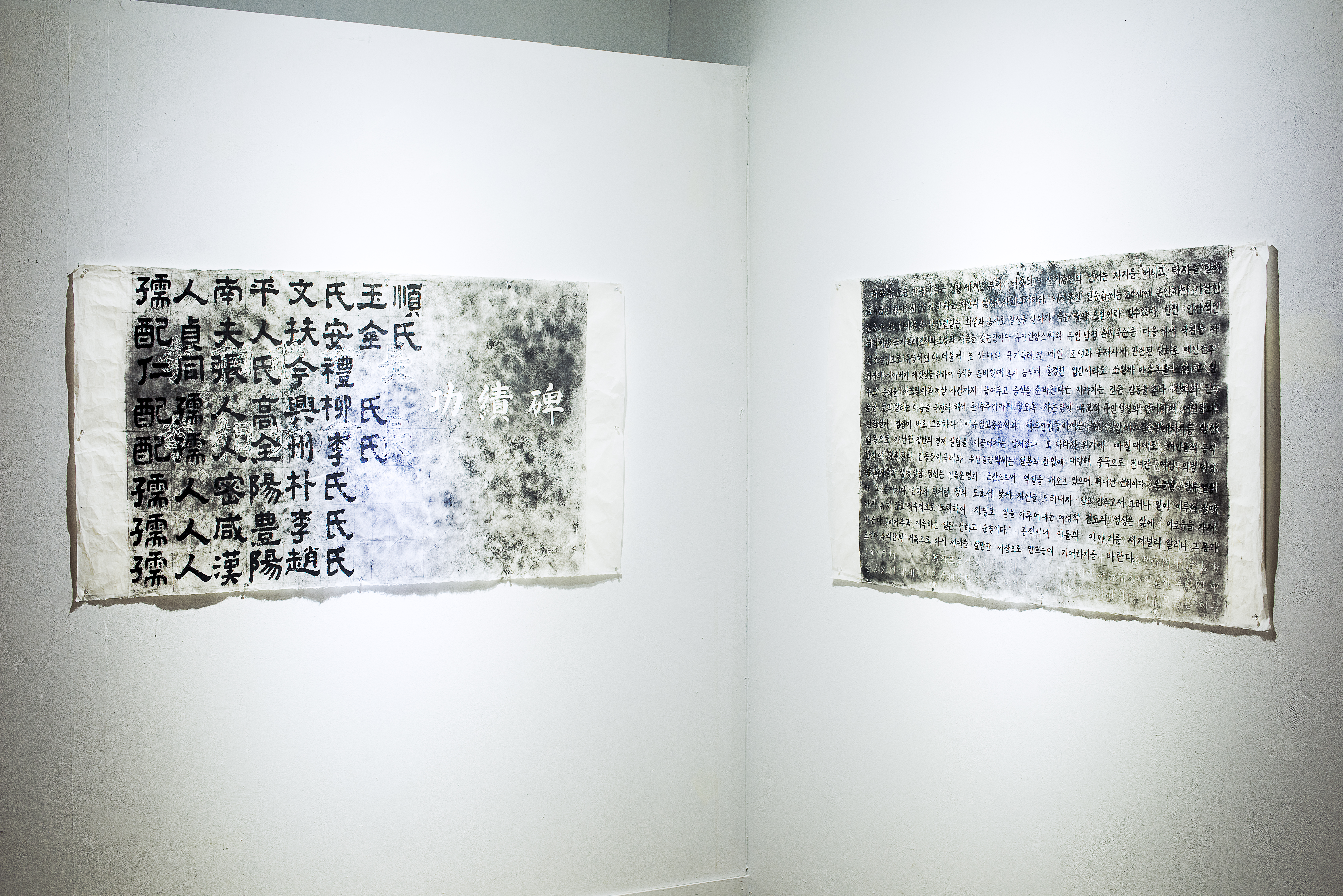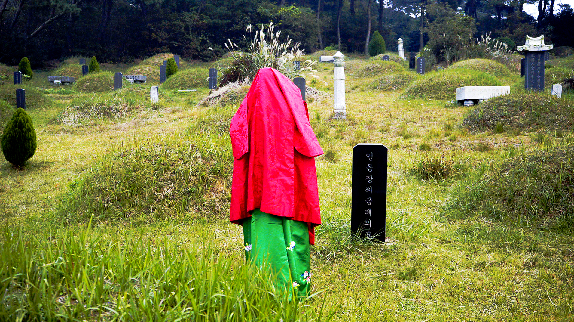 Deserted House_Ceremonial Foods (2017) reenacts the memories of jesa at my grandmother’s house, and inserted between the scenes of reenactment are deviations from the actual memories or the conventional narrative surrounding jesa. Deserted House_The Topological Map of the Graves (2018) reveals the locations of the graves where the women, who do not share patrilineal surnames, and thus are outsiders to the clan, are buried. While this work exposes the clan hierarchy, at the same time it presents the construction of new memorial that rewrites the clan’s accomplishments in the narrative of these women. Along with the three video works, photographs and drawings that were produced en route are installed at the exhibition space, constructing a cross-medial web that consolidates the links between all the work and augments both the content and the intent of the work.