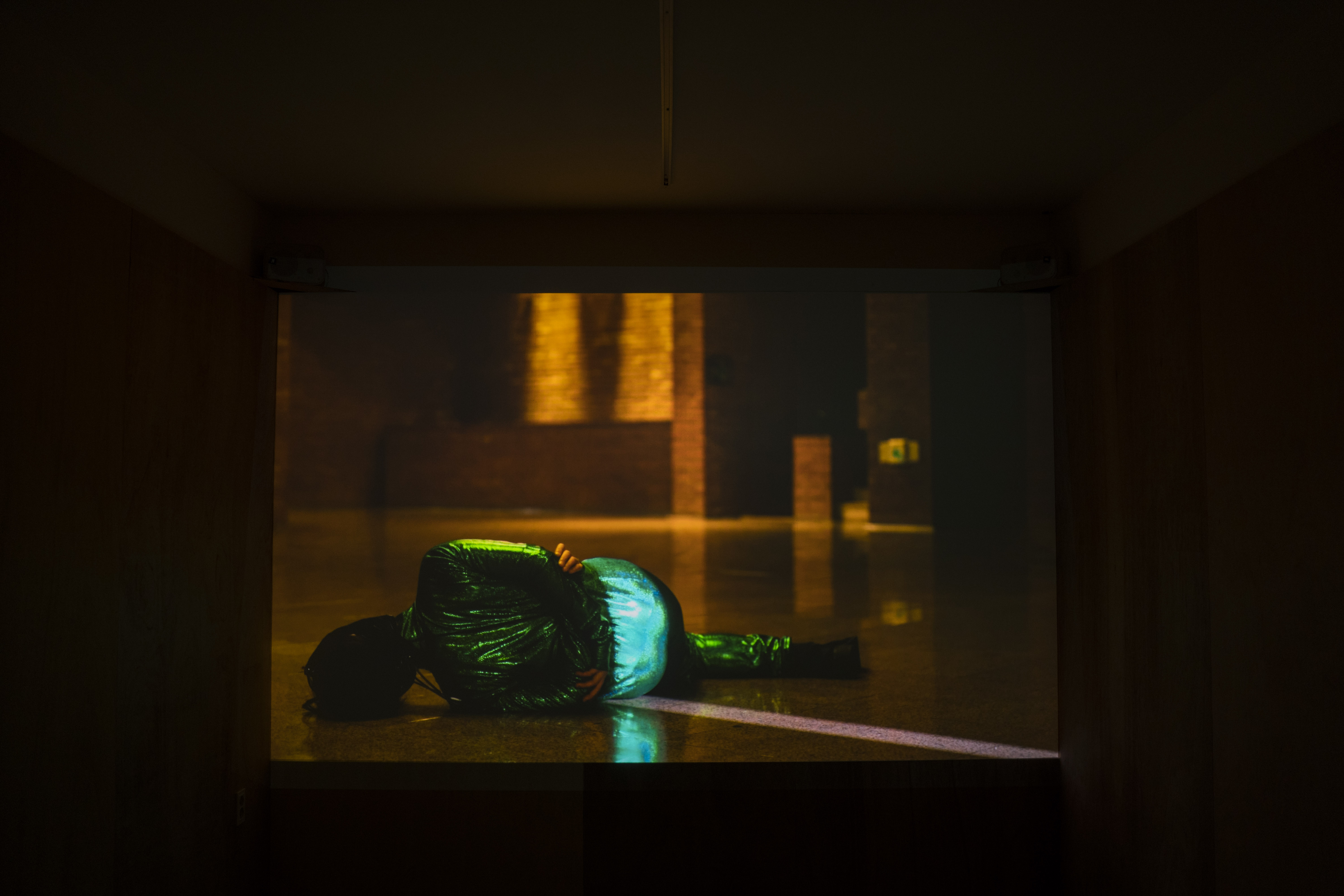 <은유의 변주들>은 감염병과 난민의 이동하는 은유적 이미지를 퍼포먼스라는 신체를 활용한 매체로 옮기는 시도를 보여주는 퍼포먼스 영상 작업이다. 이는 감금과 격리의 상황에서 강제되는 신체성과 그로부터 야기되는 정동을 다루려는 의도이며, 소통과 언어의 문제를 보여주는 것이기도 하다. 물리적 공간에서의 억압과 고립이 ‘인간’이라는 신체적(내적) 공간으로 전유되는 지점을 포착한 은유로서의 퍼포먼스는 영상으로 기록되어 전시장에서 상영되고 다시 전시 기간 동안 퍼포먼스 공연으로 중첩된다.