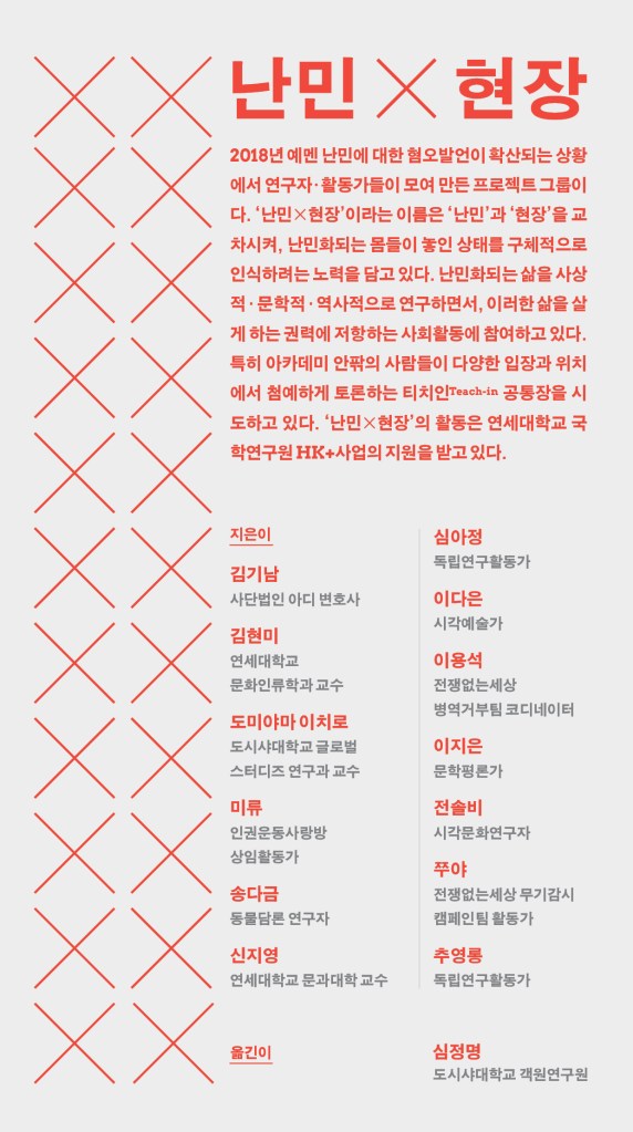 * 자세한 텍스트 기록은 갈무리 출판사에서 출간된 <난민, 난민화 되는 삶(2020)>에서 확인하실 수 있습니다.